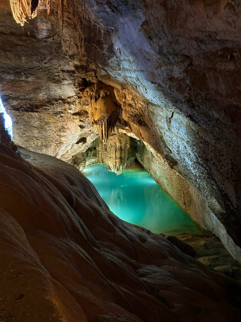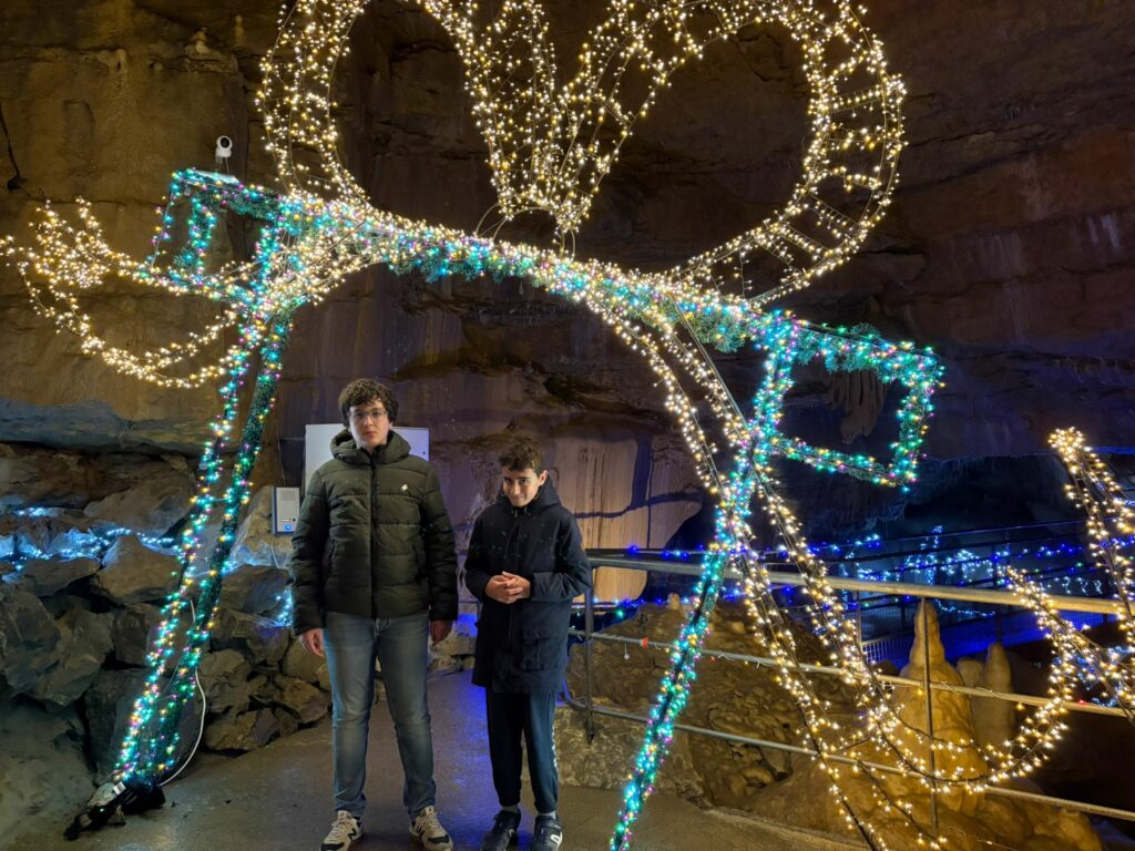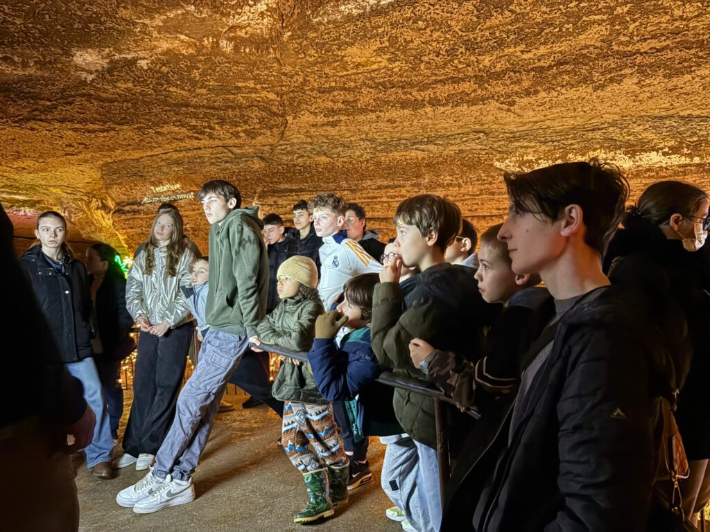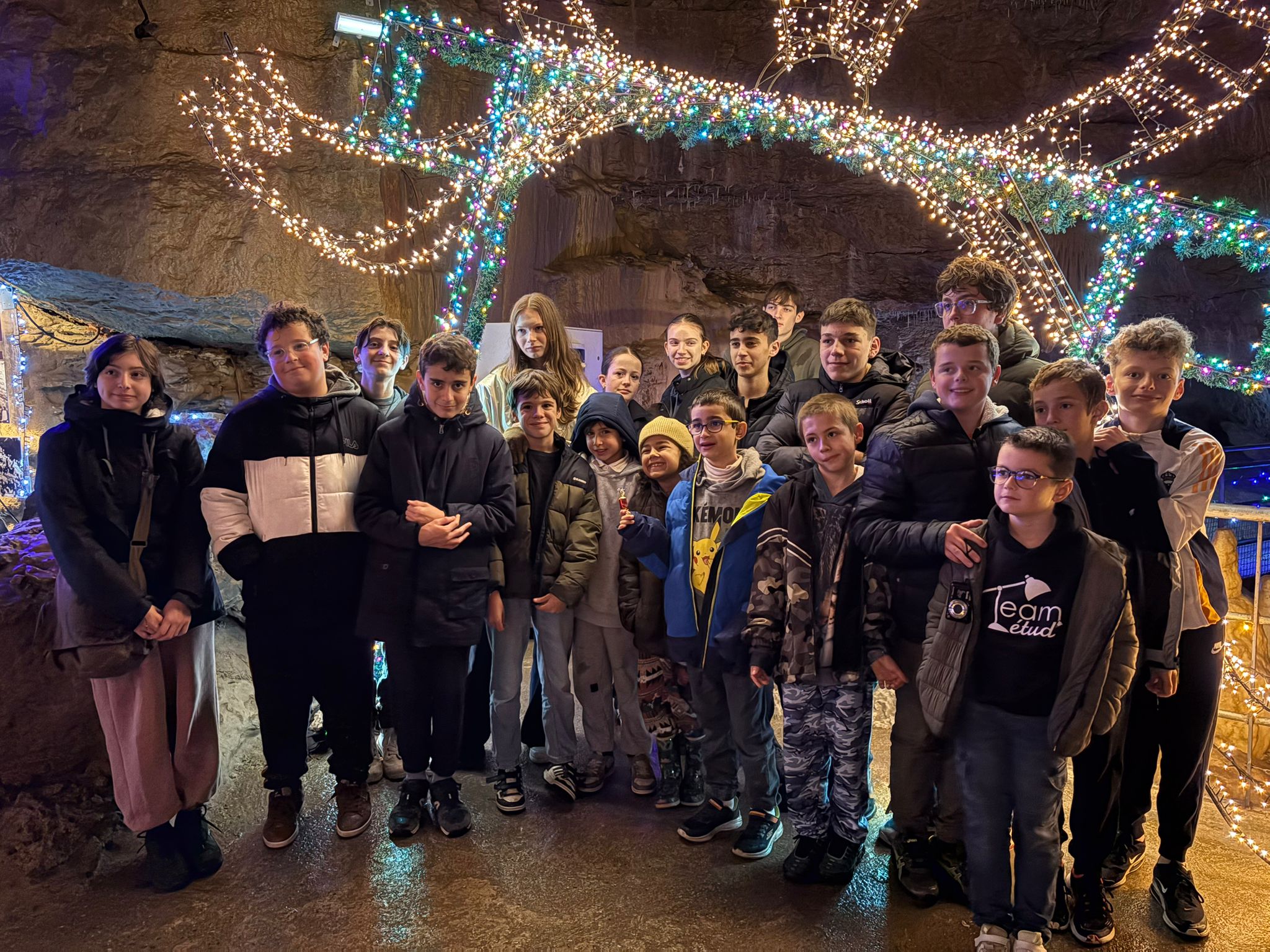 Au fil de la visite, les enfants ont pu observer les formations rocheuses façonnées par l’eau, les galeries, les draperies et les bassins, et s’émerveiller devant ce monde souterrain mis en lumière pour Noël.