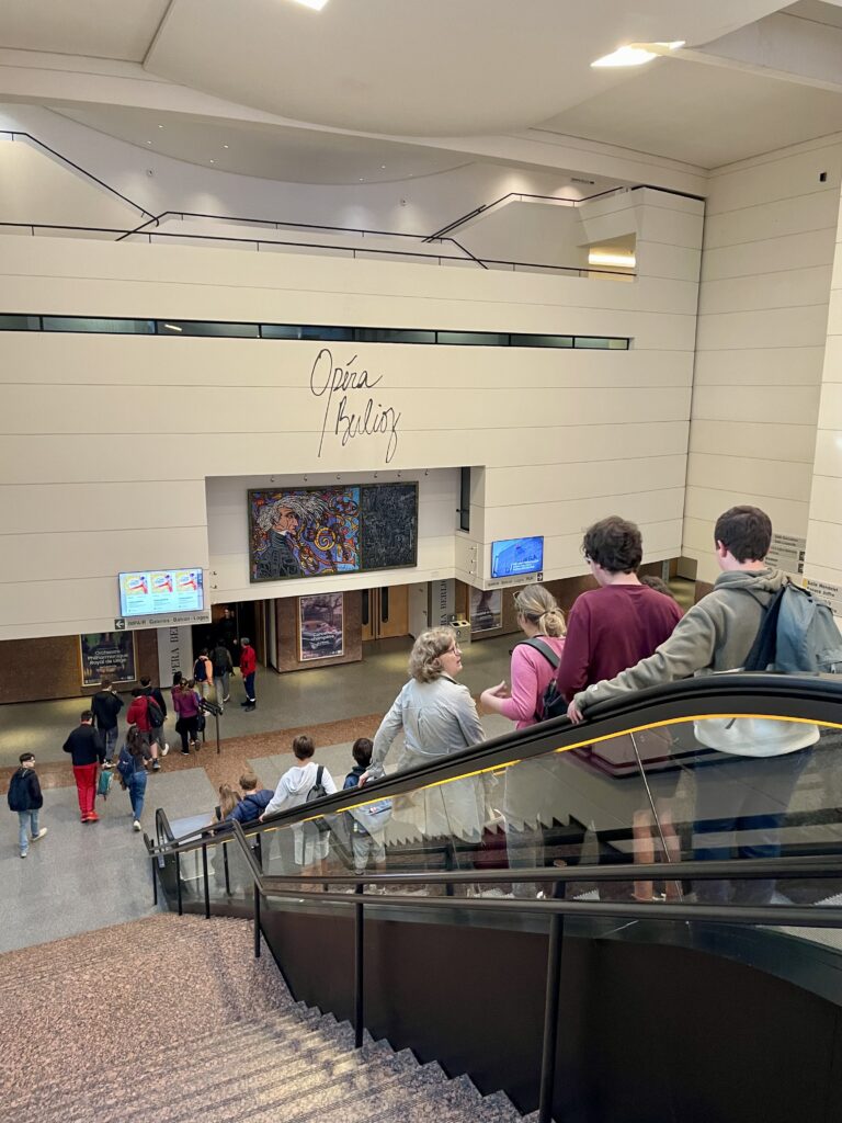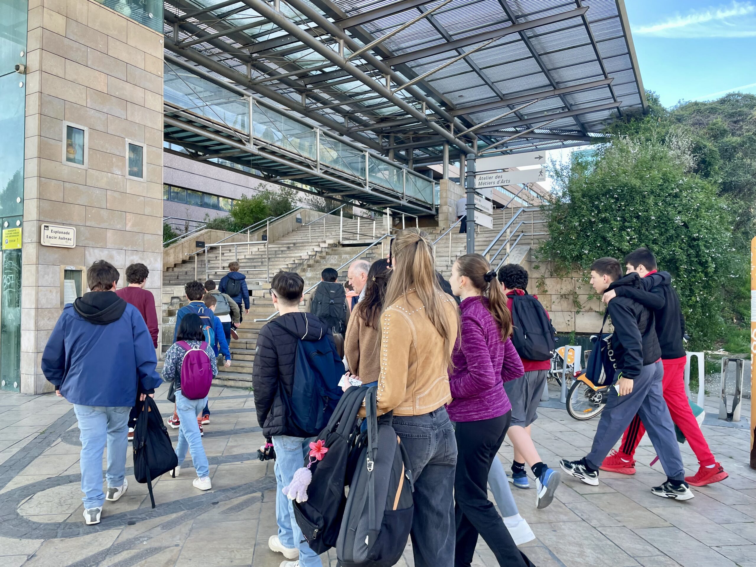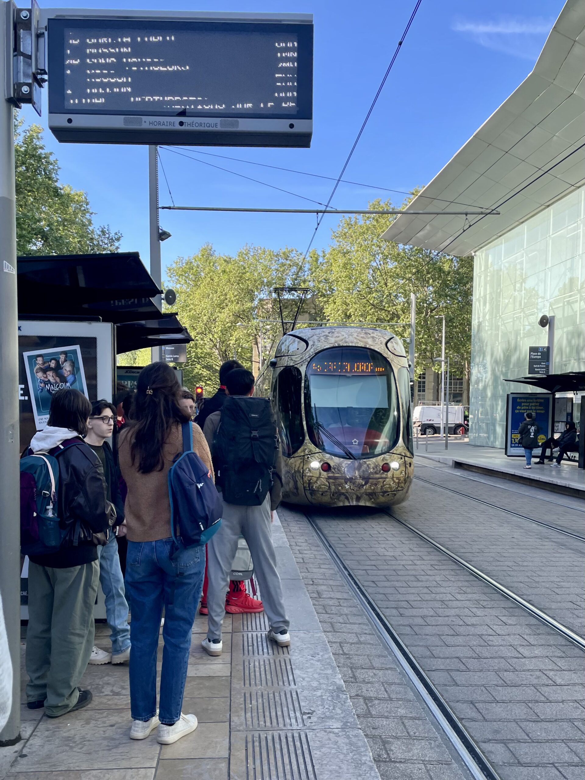 La journée a débuté tôt avec un départ en minibus depuis l’école. Après notre arrivée au parking Europa, les élèves ont pris le tramway, ligne : 1, direction : mosson. Pour certains, c’était une première expérience, à la fois en tramway et également dans un lieu culturel comme l’opéra.